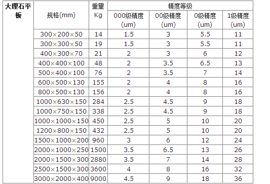 大理石平板的巖石經長期天然時效,組織結構均勻,線脹系數極小,內應力完全消失,不變形,因此精度高;另外大理石平板剛性好,硬度高,耐磨性強;不怕酸,鹼液物侵蝕,不會生銹,不必涂油,不易粘微塵,維護,保養方便簡單,使用壽命長。大理石平板不會出現劃痕,不受恒溫條件阻止,在常溫下也能保持測溫量精度;不磁化,測量時能平滑移動,無滯澀感,不受潮濕影響,平面稱定好。