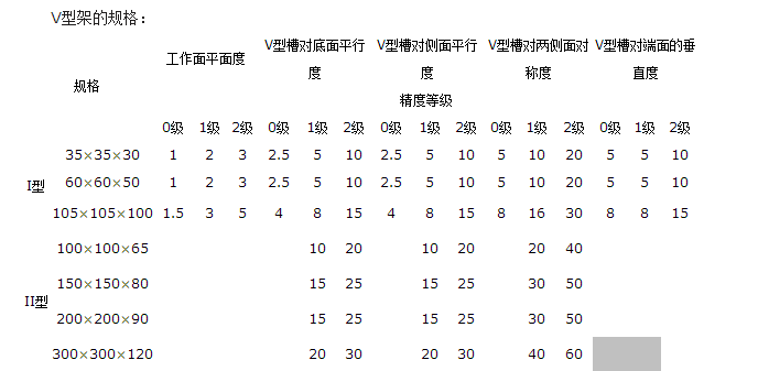V型架的標準:按國家GB4972-85標準制造,一般都成對供應,是一個四棱體,四個工作面上或四個尺寸不同的90度的槽。主要用于軸類零件的檢驗和劃線。