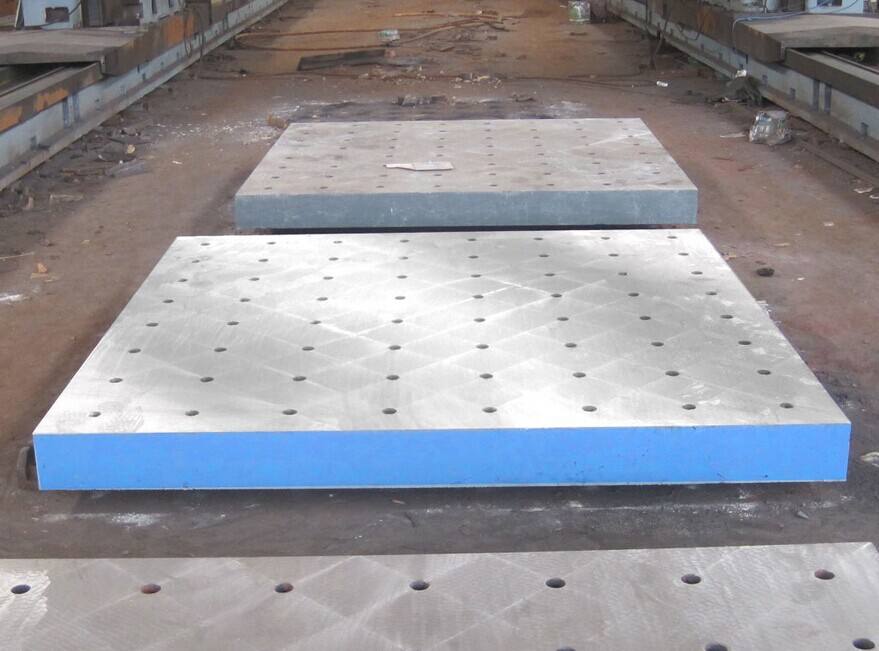 9. 焊接平臺鑄件應進行二次時效處理,其中毛坯成型后一次人工時效處理、粗刨后一次自然時效處理,自然時效時間為4個月,保證消除內應力,長期使用不變形。