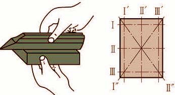 1)將刀口尺垂直緊靠在工件表面,并在縱向、橫向和對角線方向逐次檢查(圖1)。